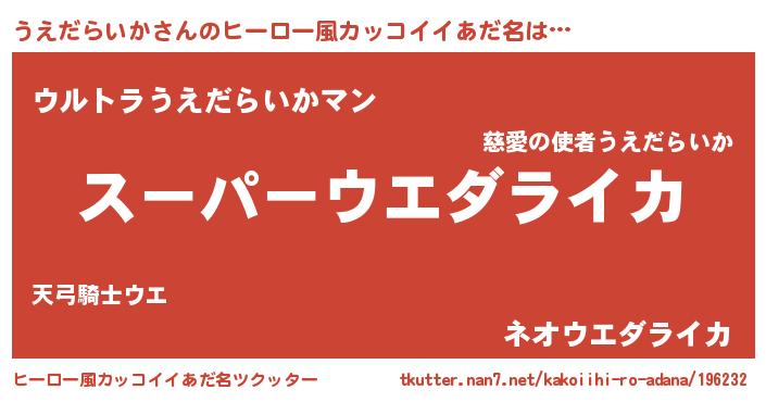 | 胡散臭い通販商品みたいなあだ名 | 『必ず成功するブレスレット…その名も「うえだらいか」』 |
