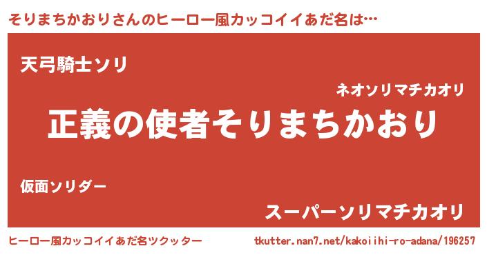 | ポケモン風あだ名 | 『ソックウザ』『ヒソリマチカオリ』 |