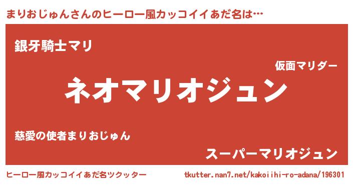 | 女子向けラノベタイトル風あだ名 | 『異世界で失敗しない100のまりおじゅん』 |