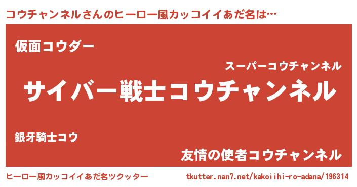 | 意味不明あだ名 | 『自称コウチャンネル』 |