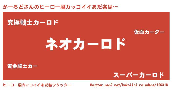 | 男性向けラノベタイトル風あだ名 | 『かーろどという概念が存在しない退屈な世界 』 |
