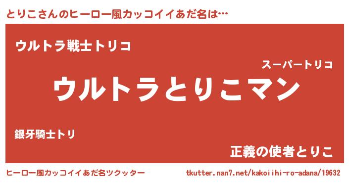 | 男性向けラノベタイトル風あだ名 | 『やはりとりこの青春ラブコメはまちがっている 』 |