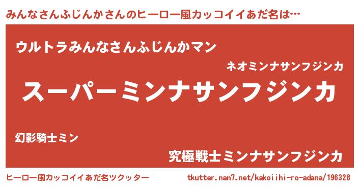 | 男性向けラノベタイトル風あだ名 | 『みんなさんふじんかの憂鬱』 |