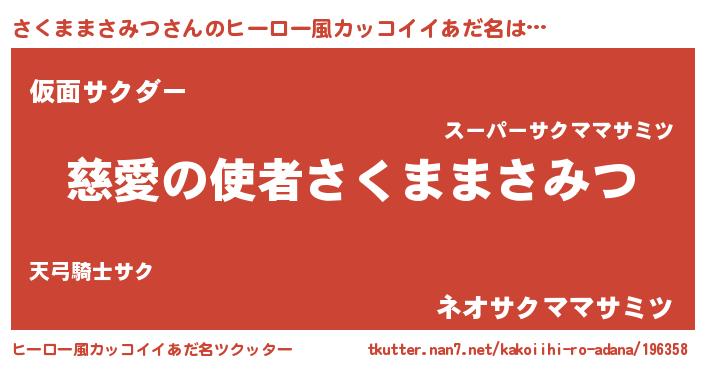 | 男性向けラノベタイトル風あだ名 | 『さくままさみつに滅ぼされるだけの簡単なお仕事です』 |