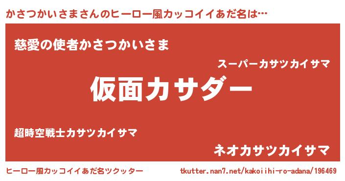 | ヘコむあだ名 | 『かさつかいさま(爆)』『かさっふぃ~』 |
