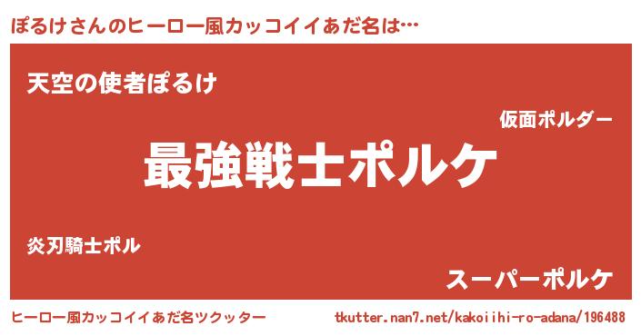 | 男性向けラノベタイトル風あだ名 | 『Re:ぽるけから始める異世界生活』 |