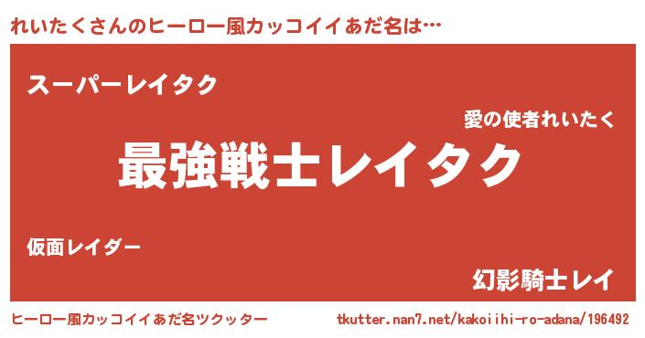 | 意味不明あだ名 | 『自称れいたく』『ペロリンれいたく』 |