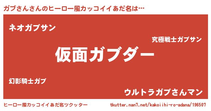 | 意味不明あだ名 | 『住所不定無職ガブさん(10歳)』 |