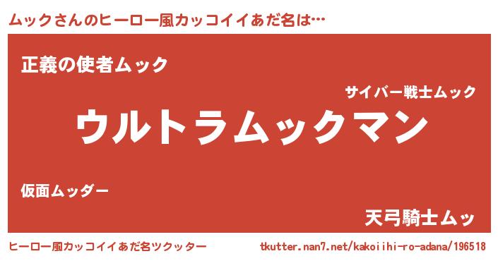 | 欧米人風あだ名 | 『ムッククリステル』『ダニエルムック』 |