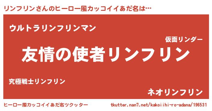 | 男性向けラノベタイトル風あだ名 | 『リンフリンスレイヤー』 |