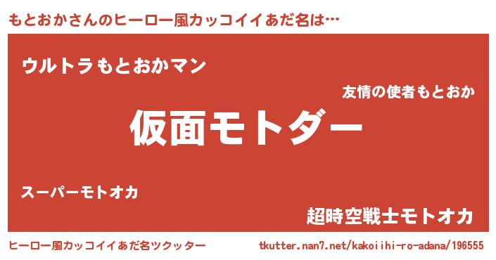 | 男性向けラノベタイトル風あだ名 | 『モトオカスレイヤー』 |