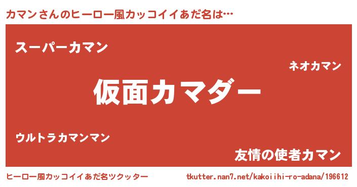 カマンさんのヒーロー風カッコイイあだ名をツクッター!