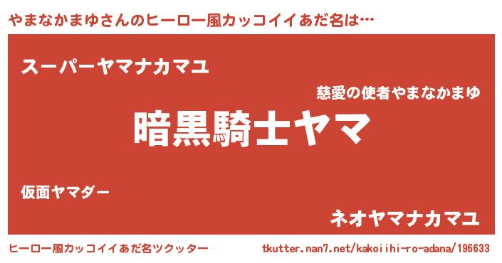 | ポケモン風あだ名 | 『ヤマゴンZ』『ヒヤマナカマユ』 |