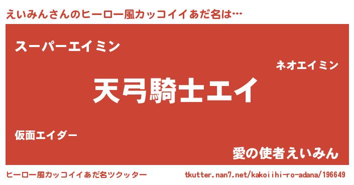 | 男性向けラノベタイトル風あだ名 | 『えいみん~年齢イコール彼女いない歴の魔法使い~』 |