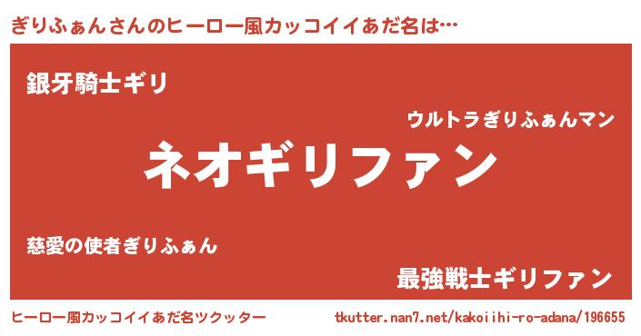 | 男性向けラノベタイトル風あだ名 | 『ギリファンスレイヤー』 |