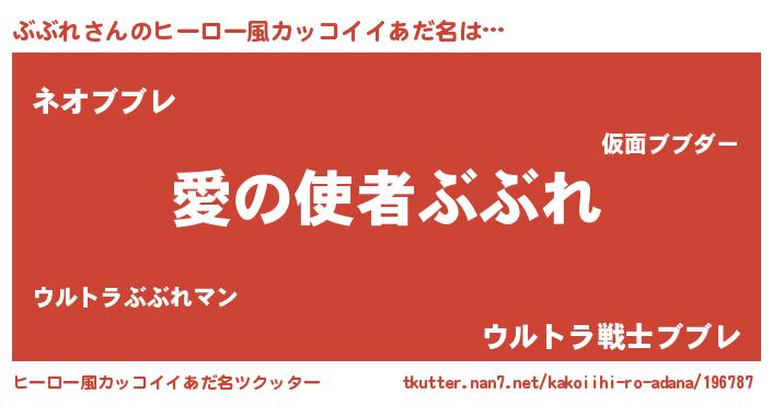 | 男性向けラノベタイトル風あだ名 | 『おまえをオタクにしてやるから、俺をぶぶれにしてくれ! 』 |