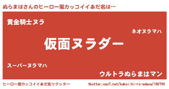 | ヘコむあだ名 | 『ぬらを』『つくし』『ぬらまは(笑)』 |
