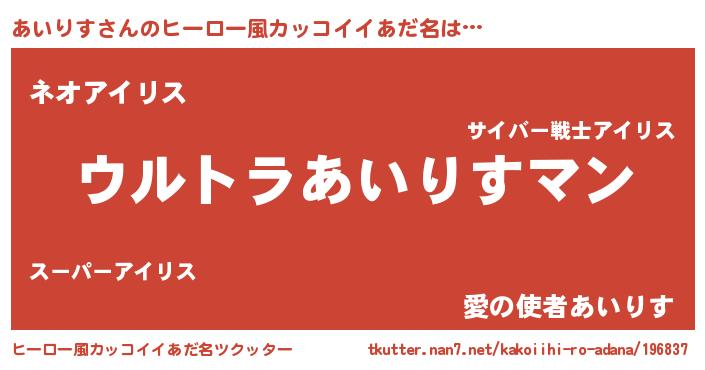 | 意味不明あだ名 | 『あいりすフォーエバー』『自称あいりす』 |