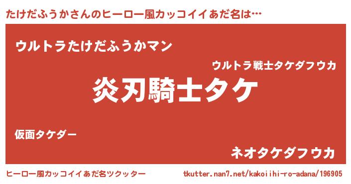 | 男性向けラノベタイトル風あだ名 | 『たけだふうかの嫁は女の子じゃないと思った?』 |