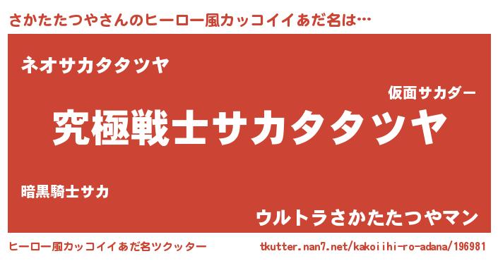 | 男性向けラノベタイトル風あだ名 | 『Re:さかたたつやから始める異世界生活』 |