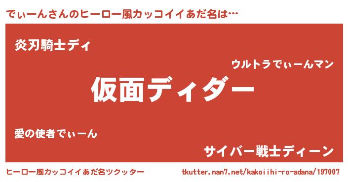 | 男性向けラノベタイトル風あだ名 | 『緋弾のディーン』『魔弾の王とでぃーん』 |
