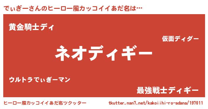 | 男性向けラノベタイトル風あだ名 | 『誰もが恐れるあのでぃぎーが、ぼくの専属メイドになるようです。』 |