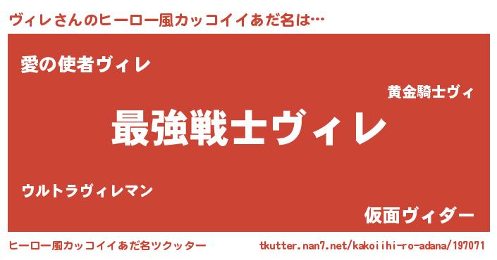 | 恥ずかしいあだ名 | 『ヴィレデラックス』『ヴィリンリン』 |