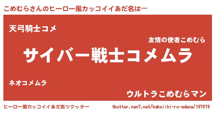 | 男性向けラノベタイトル風あだ名 | 『こめむらに滅ぼされるだけの簡単なお仕事です』 |