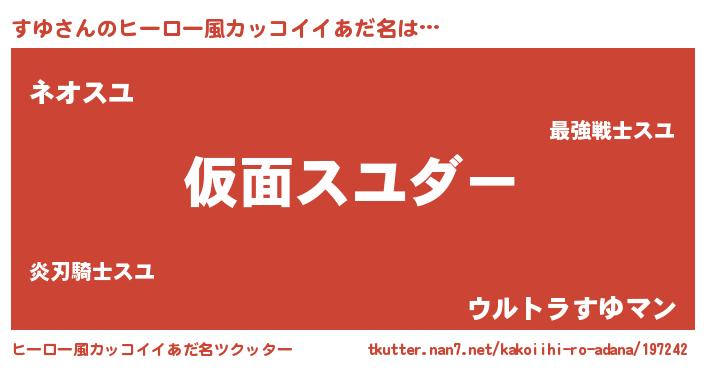 | 男性向けラノベタイトル風あだ名 | 『魔弾の王とすゆ』 |