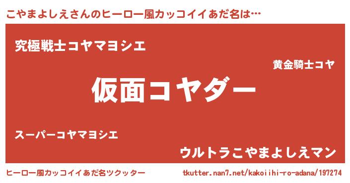 | 恥ずかしいあだ名 | 『コヤマヨシエデラックス』『こやっちょ』 |