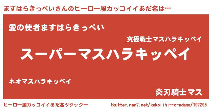 | 女子向けラノベタイトル風あだ名 | 『(仮)ますはらきっぺいのやんごとなき事情』 |
