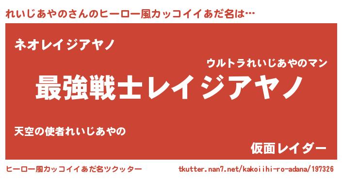 | 伝説のあだ名 | 『古より伝わる暗殺者れいじあやの』 |