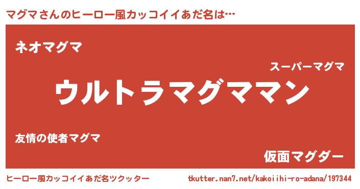 | 女子向けラノベタイトル風あだ名 | 『マグマの雑貨屋さん』『マグマ恋絵巻』 |