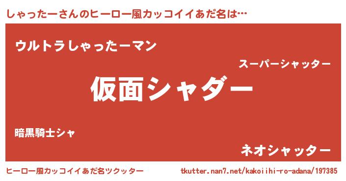 | 男性向けラノベタイトル風あだ名 | 『緋弾のシャッター』『しゃったーの憂鬱』 |