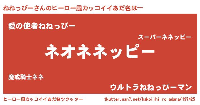 | 伝説のあだ名 | 『古より伝わる勇者ねねっぴー』 |