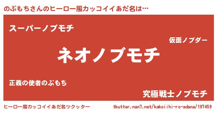 | 胡散臭い通販商品みたいなあだ名 | 『絶対に幸福をもたらす健康食品…その名も「のぶもち」』 |