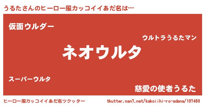 | 男性向けラノベタイトル風あだ名 | 『うるたという概念が存在しない退屈な世界 』 |