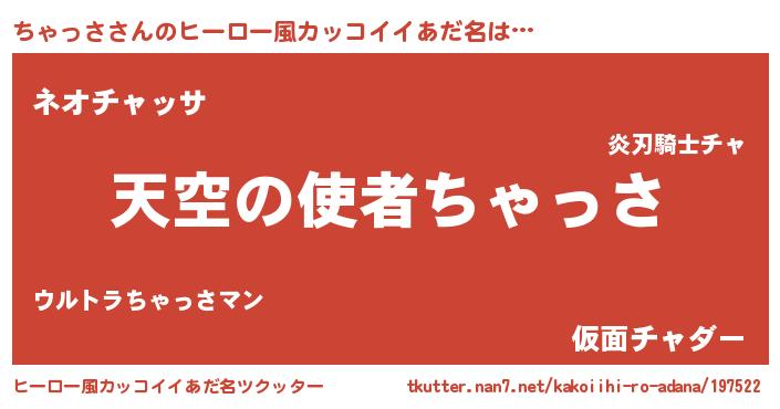 | ヘコむあだ名 | 『ちゃっさ(爆)』『ちゃを』 |