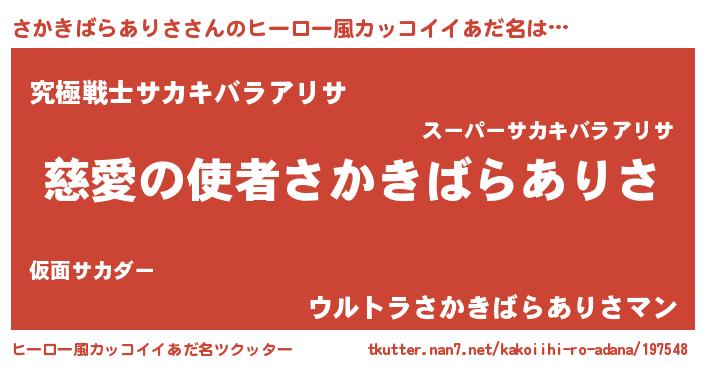 | 男性向けラノベタイトル風あだ名 | 『ノーゲーム・ノーサカキバラアリサ』 |