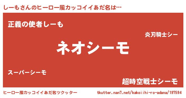 | 男性向けラノベタイトル風あだ名 | 『誰もが恐れるあのしーもが、ぼくの専属メイドになるようです。』 |