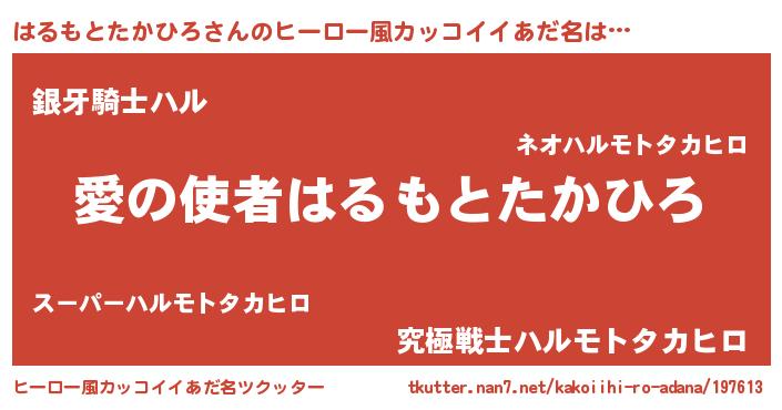 | 男性向けラノベタイトル風あだ名 | 『おまえをオタクにしてやるから、俺をはるもとたかひろにしてくれ! 』 |
