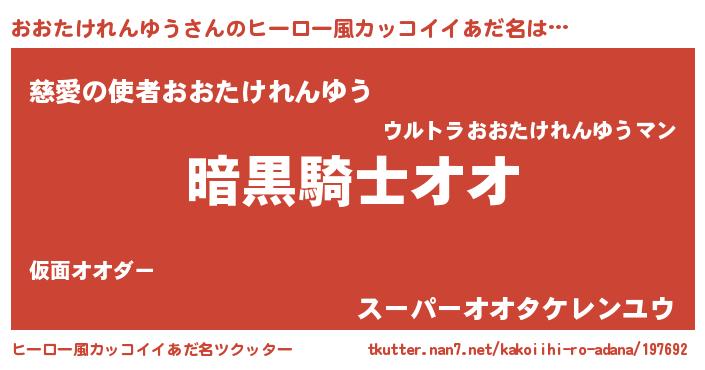 | ポケモン風あだ名 | 『ヒオオタケレンユウ』『オックウザ』 |