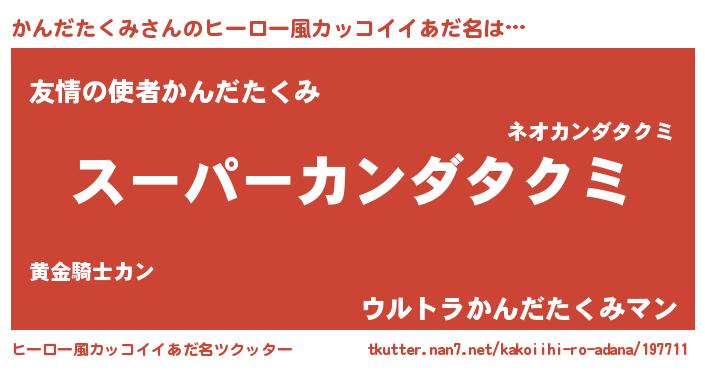 | 胡散臭い通販商品みたいなあだ名 | 『モテモテ間違いなしブレスレット…その名も「かんだたくみ」』 |