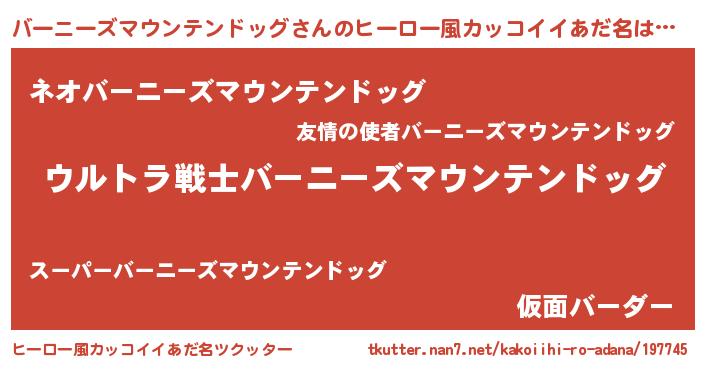 | 男性向けラノベタイトル風あだ名 | 『魔法科高校のバーニーズマウンテンドッグ』 |