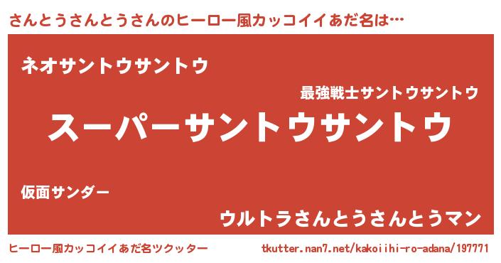 | 男性向けラノベタイトル風あだ名 | 『サントウサントウアートオンライン』 |
