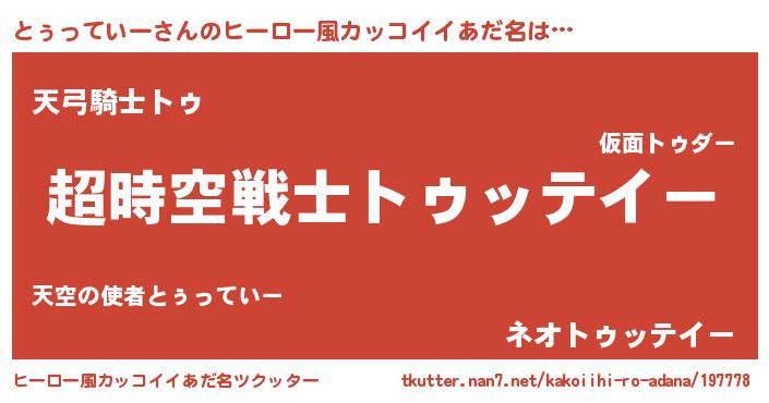 | 男性向けラノベタイトル風あだ名 | 『トゥッテイースレイヤー』 |