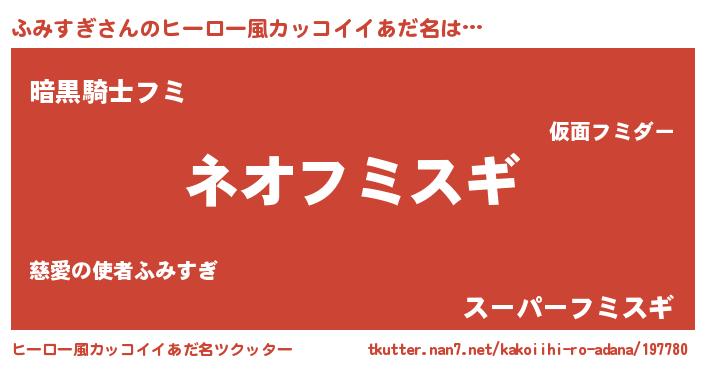 | 男性向けラノベタイトル風あだ名 | 『ふみすぎという概念が存在しない退屈な世界 』 |