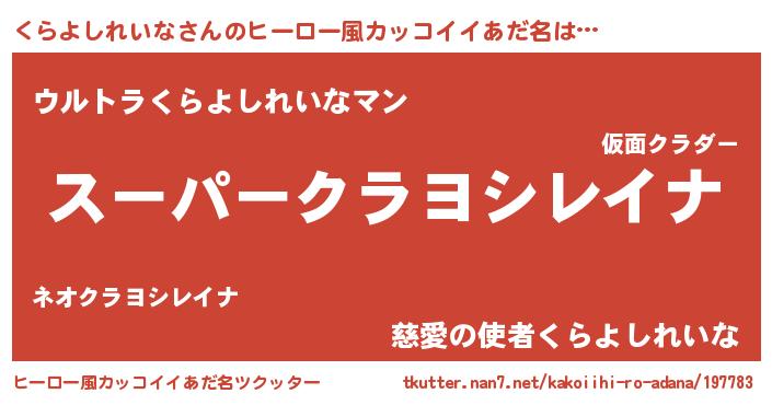 | 男性向けラノベタイトル風あだ名 | 『くらよしれいなの憂鬱』 |