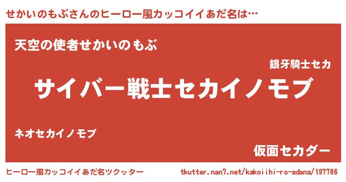 | ヘコむあだ名 | 『せかっぺ』『せかいのもぶ(遠い目)』 |