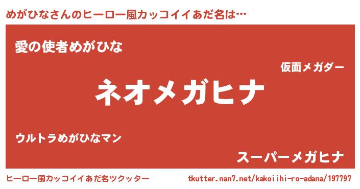 | 意味不明あだ名 | 『永久保存めがひな』『ペロリンめがひな』 |